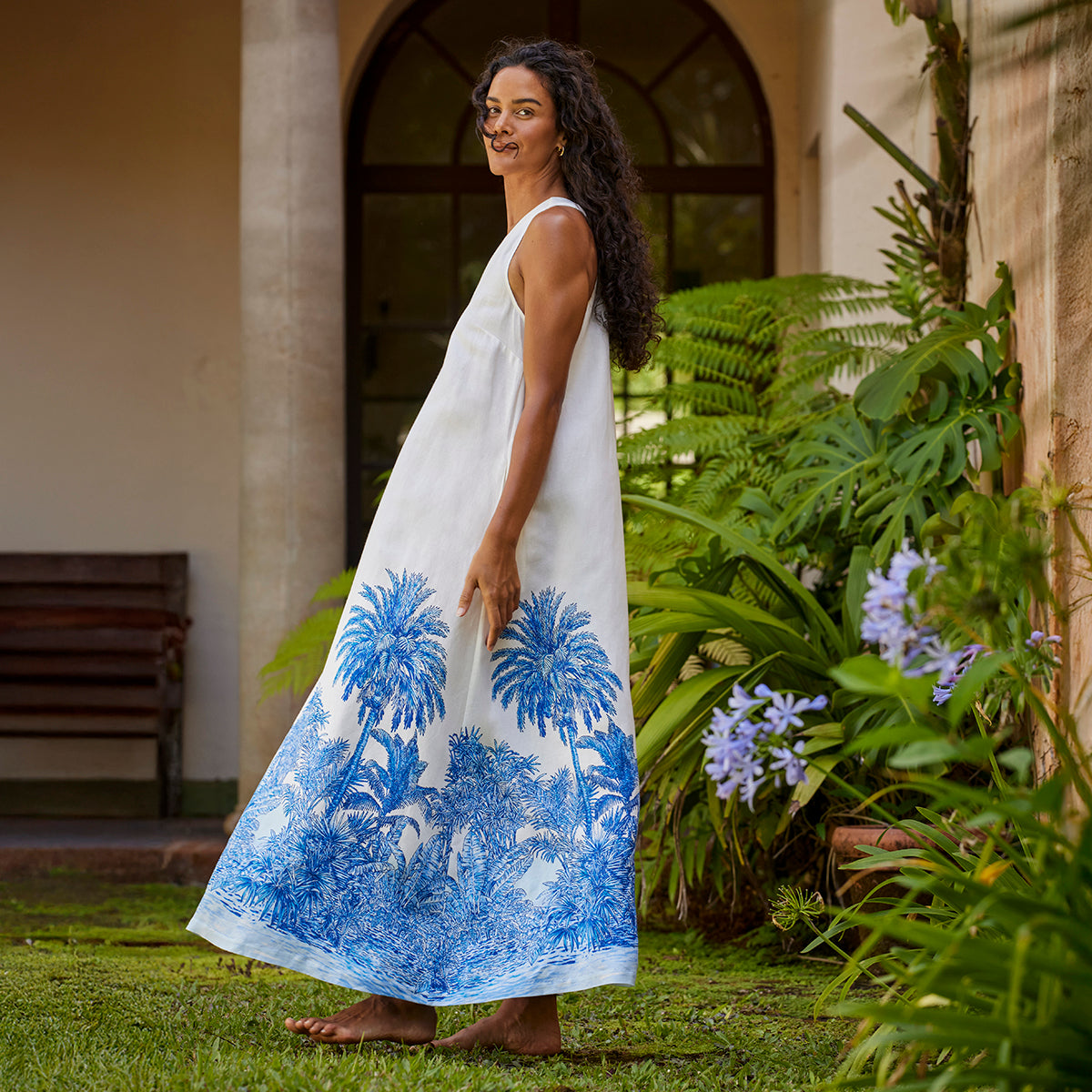 Inspired by breeze blocks, an architectural staple of our island, which provide shade and allow wind to pass, creating a cooling system. The breeze block pattern mirrors the lightweight breathability of this garment. Hand-drawn by our artist. This knitted artwork is an exclusive Tori Richard design.