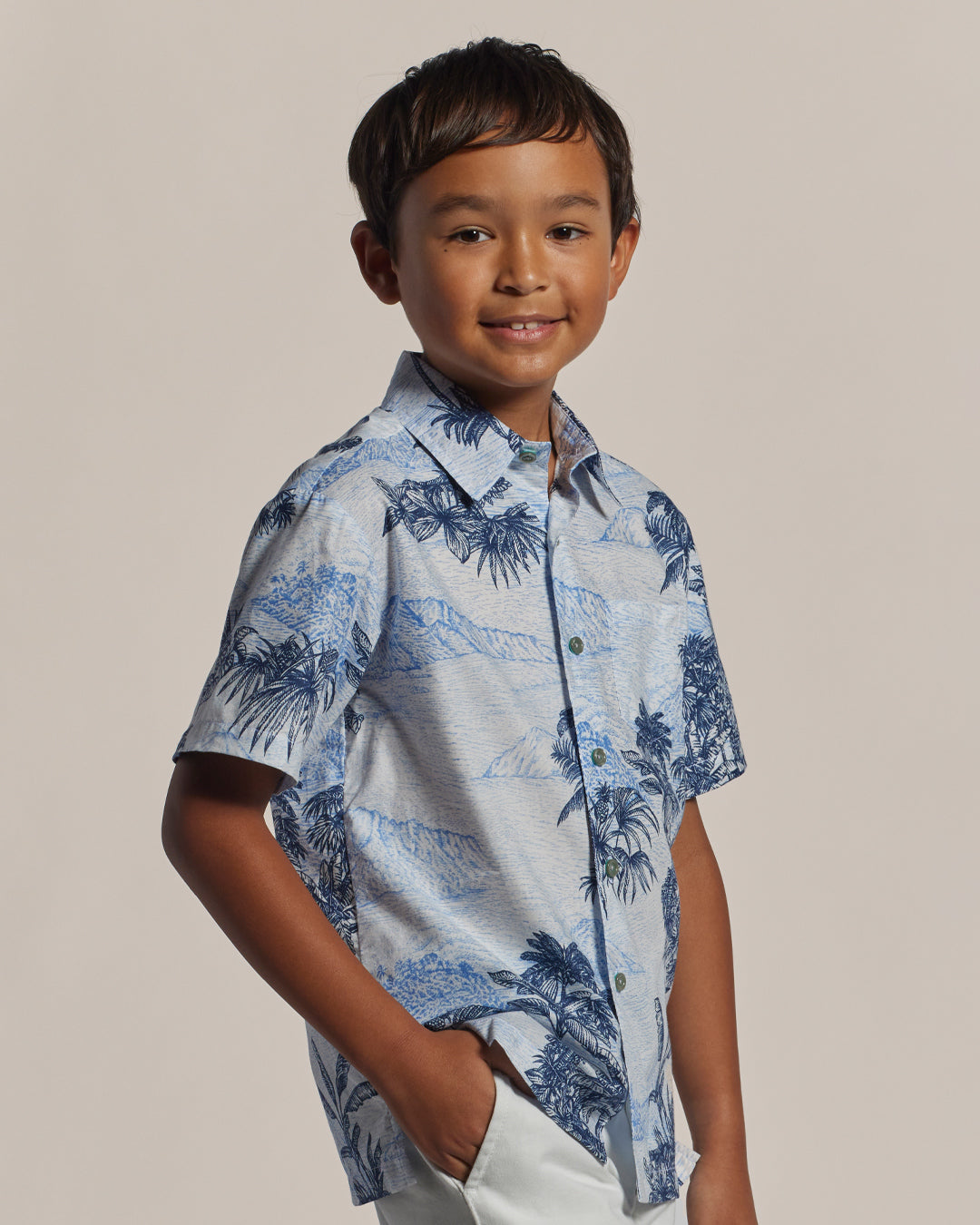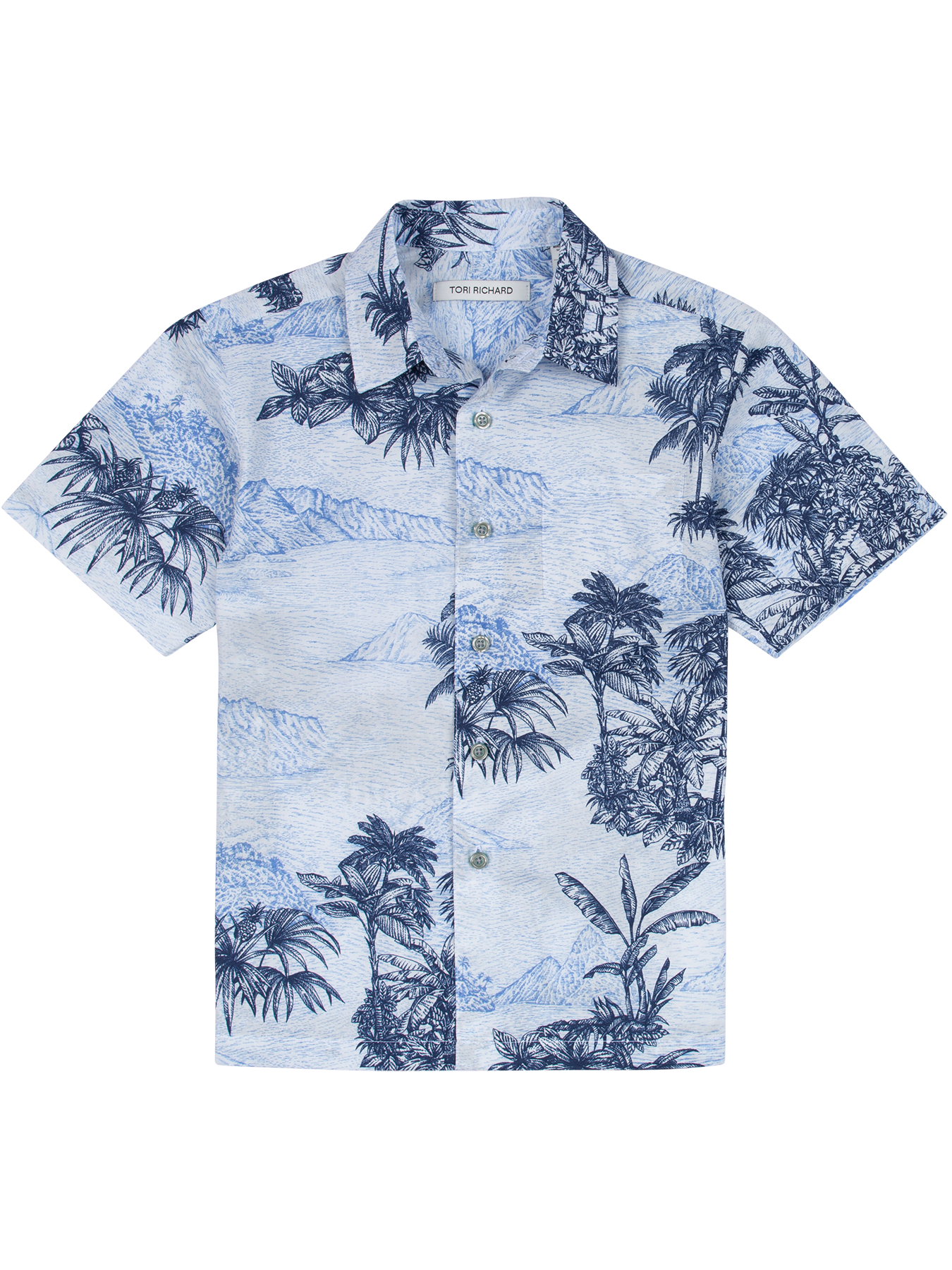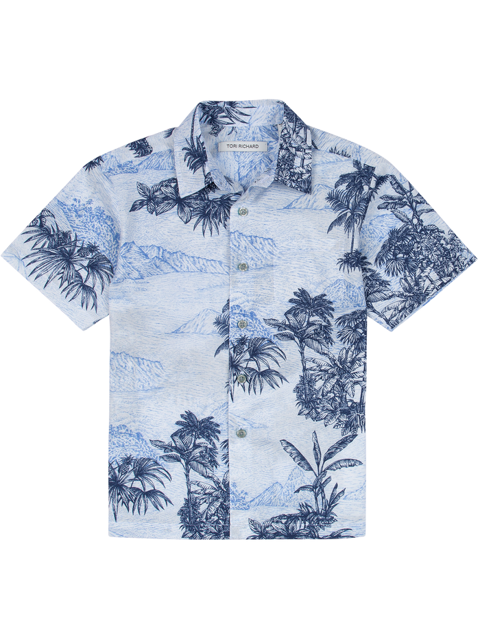 日本でプリントし、ハワイで手作業で裁断・縫製されたこのシャツは、温暖な気候でも涼しく過ごせる理想的な素材、100%コットンローンを使用しています。60年にわたり磨き上げてきた独自のスクリーンカッティング技術が光ります。独自の仕上げにより、ほのかな光沢が生まれます。