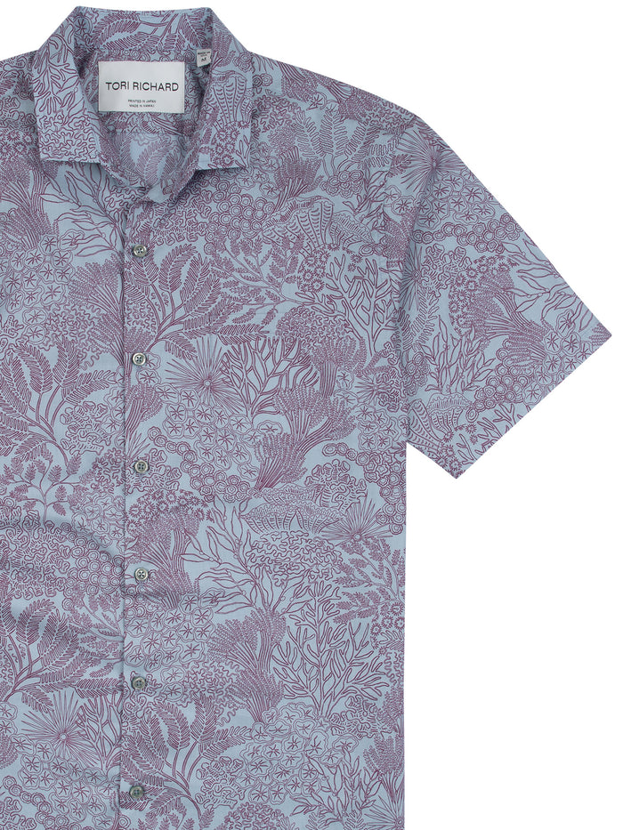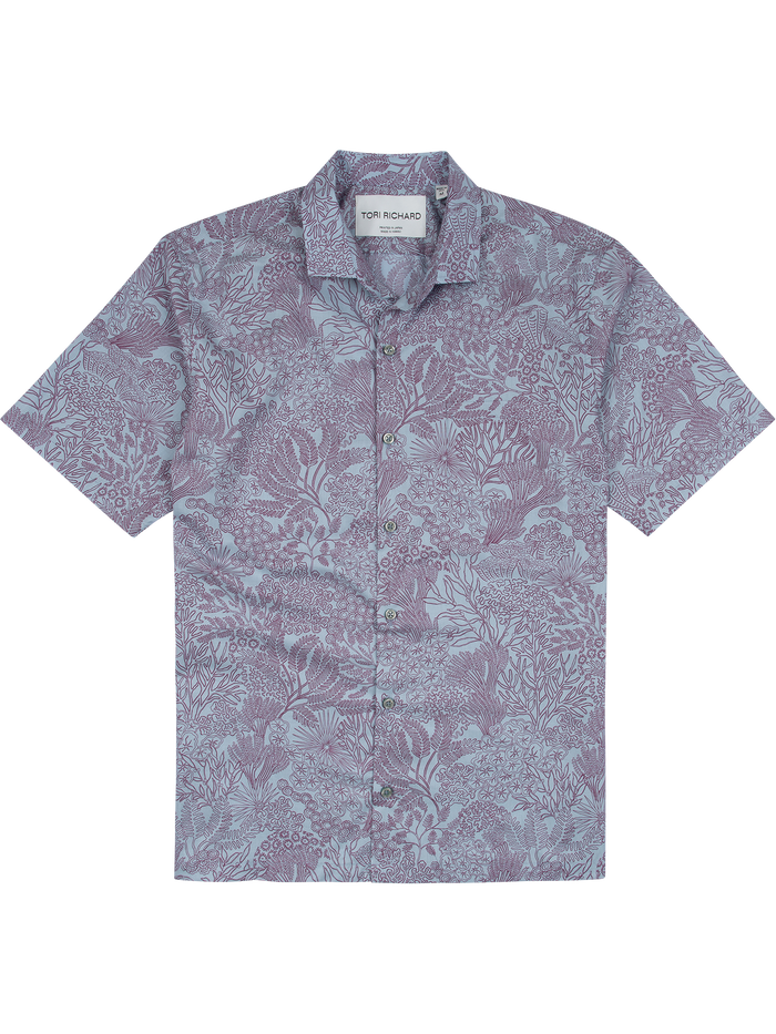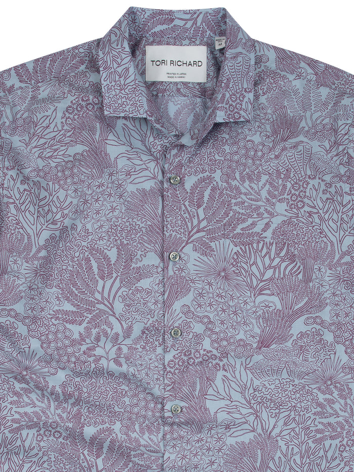日本でプリントし、ハワイで手作業で裁断・縫製されたこのシャツは、温暖な気候でも涼しく過ごせる理想的な素材、100%コットンローンを使用しています。60年にわたり磨き上げてきた独自のスクリーンカッティング技術が光ります。独自の仕上げにより、ほのかな光沢が生まれます。