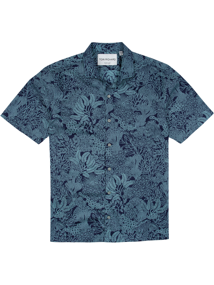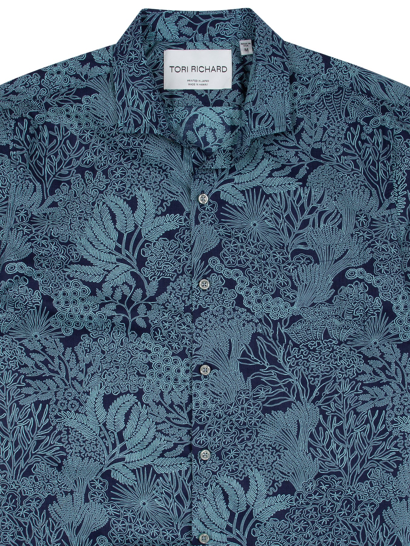 日本でプリントし、ハワイで手作業で裁断・縫製されたこのシャツは、温暖な気候でも涼しく過ごせる理想的な素材、100%コットンローンを使用しています。60年にわたり磨き上げてきた独自のスクリーンカッティング技術が光ります。独自の仕上げにより、ほのかな光沢が生まれます。