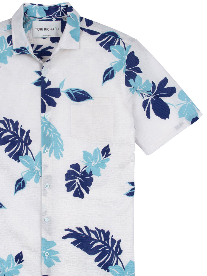 Cotton lawn pucker is an evolution of our classic cotton lawn. A crinkled or "puckered" effect creates space between the fabric and the wearer, allowing heat to exit and fresh air to circulate.