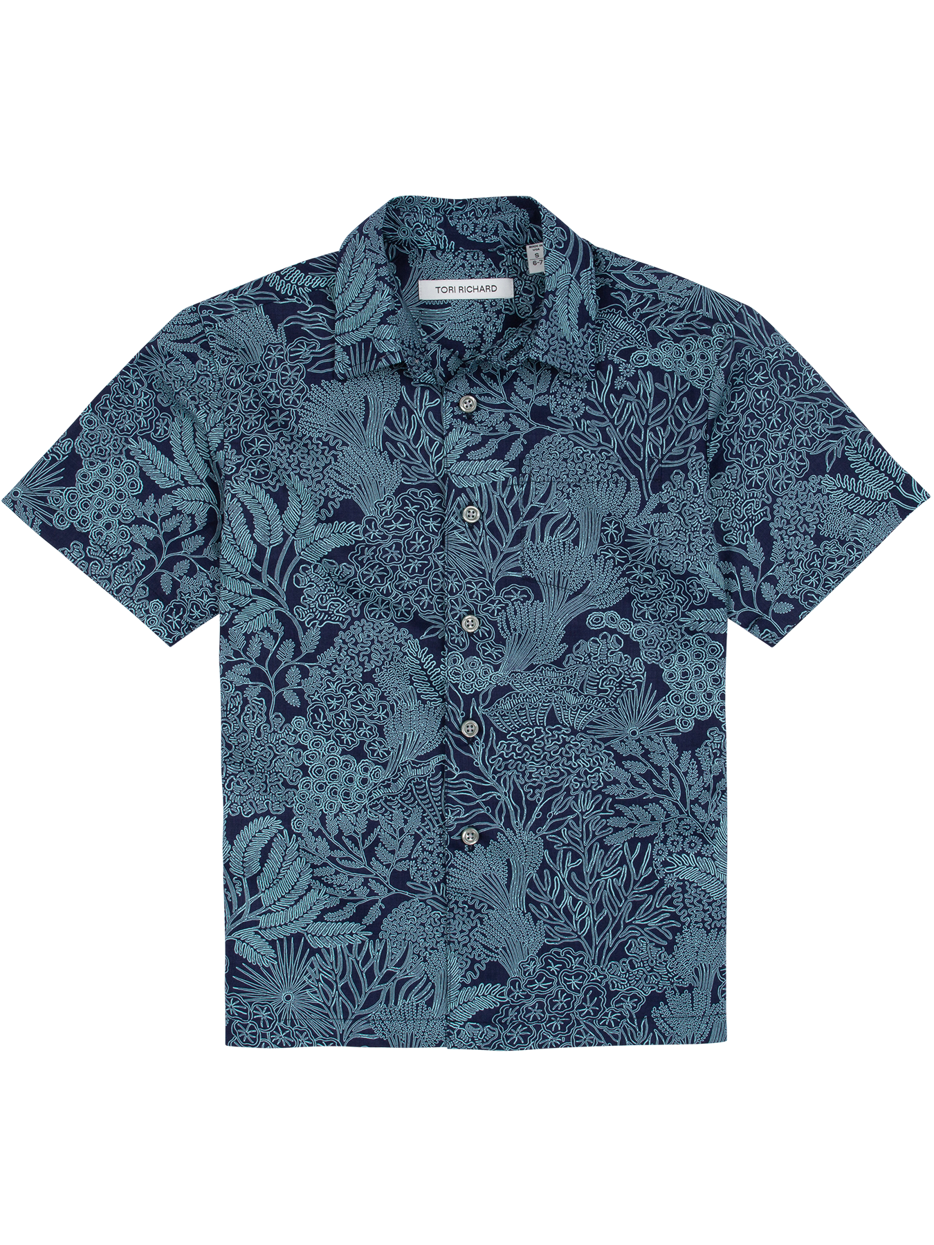 Printed on our proprietary cotton lawn fabric using the same screen-cutting techniques we have used for over 60 years. Suited for warm humid climates, it's lightweight without being sheer, crease resistant, and has a subtle luster.