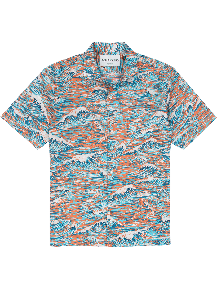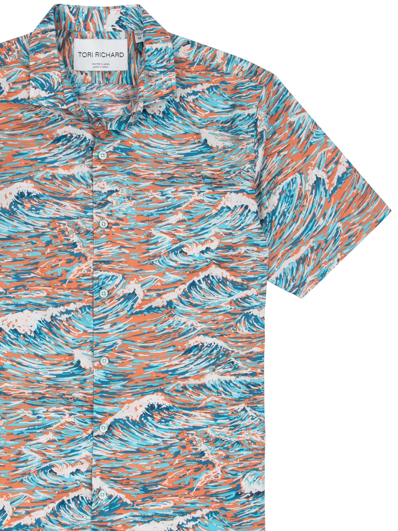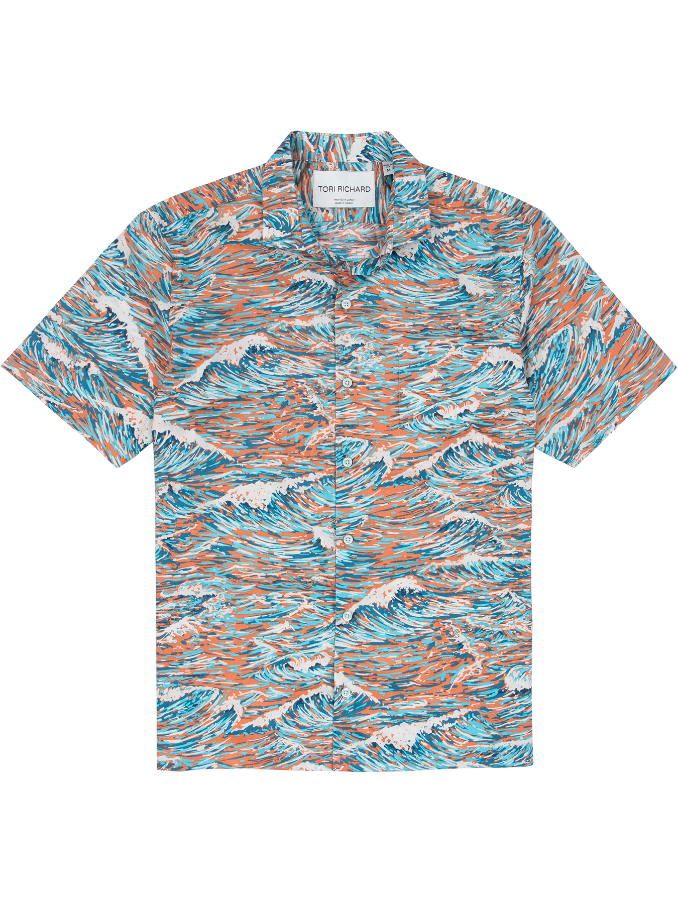 Made from 100% cotton lawn fabric, this shirt is printed in Japan using meticulous screen-cutting methods that are six decades in the making. Our lightweight material holds its shape and resists creasing. A special finish gives it a slight sheen. Hand-cut and sewn in Hawai‘i, USA.